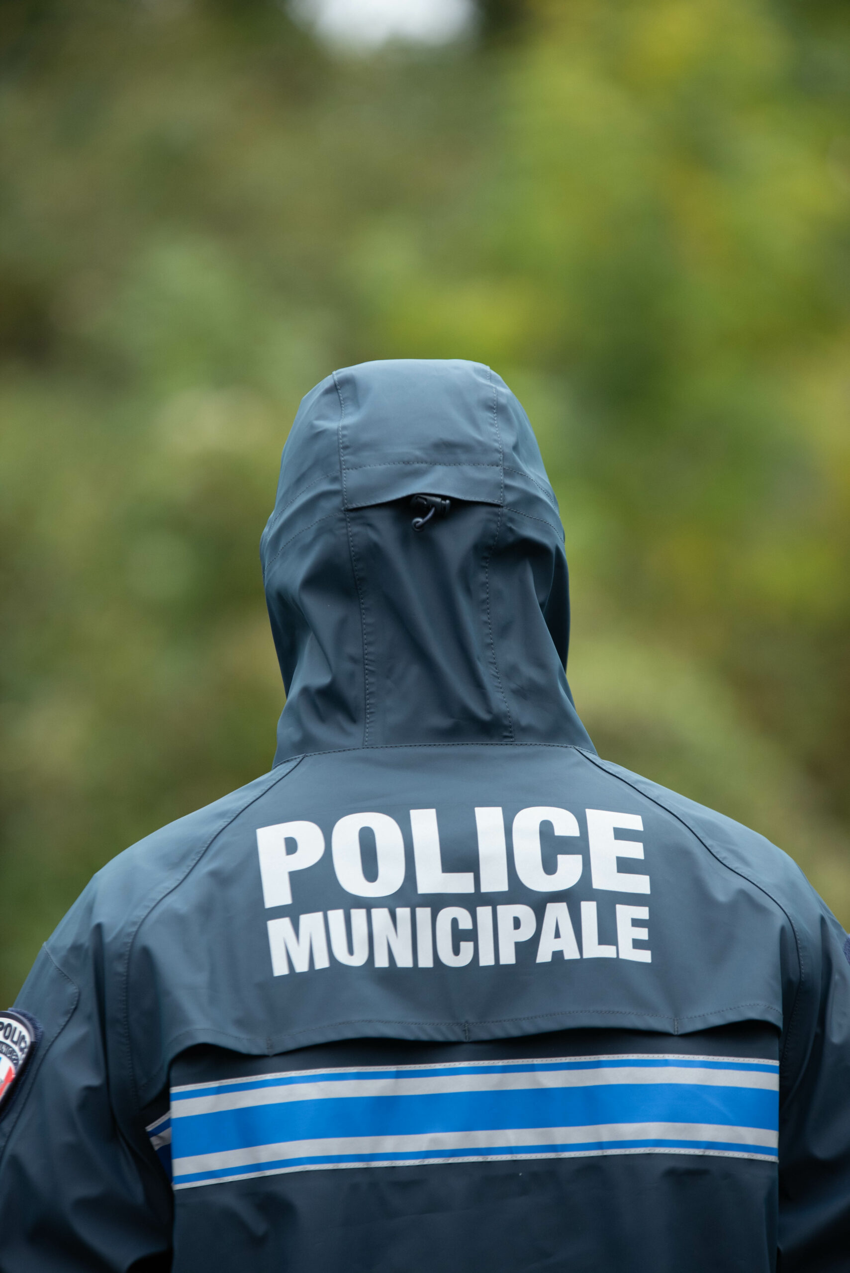Marquage en transfert « POLICE MUNICIPALE » et bandes rétroréfléchissantes face-dos